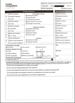 澳面点师TRA通过评估表